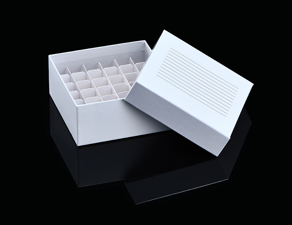 The paper freezing tube box produce by high quality cardboard, which is widely used in experimental tests in biological laboratory. The freezing tube box can be used to store many kinds of freezing tubes or microcentrifuge tubes.